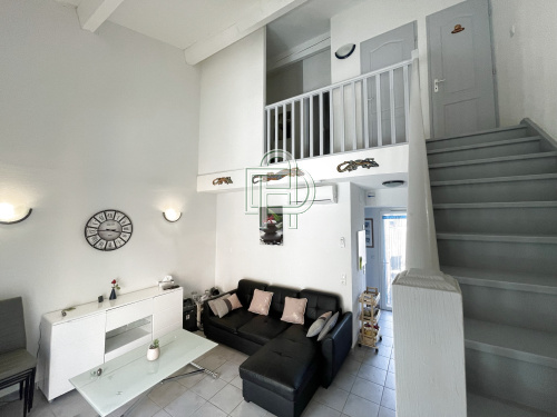 EXCLUSIVITE.Agréable PAVILLON DE PLAIN PIED de 50m², séjour avec cuisine équipée donnant sur un magnifique jardin arboré, deux chambres avec placard, une chambre en mezzanine, un terrain arrière. Cellier, parking privé.Agréable résidence située au calme. Petite copropriété aux faibles charges (environ 40€/mois)