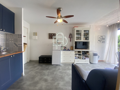 **VENDU** Appartement T2 mezzanine lumineux avec une agréable terrasse, à 50 m de la plage du Grazel, une grande chambre de 7,35 m², une salle d'eau et une cuisine ouverte sur le salon donnant sur la terrasse pour profiter de la vue dégagée et arborée, Une mezzanine, non comprise dans la surface habitable est à disposition, La terrasse est de 9,58 m² exposé OUEST, Dans une résidence de standing avec de faible charges soit 50€ par mois eau incluse, L'appartement possède un parking privatif.